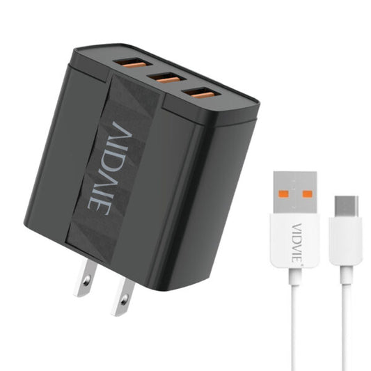 Cargador Tipo C Para Celular Inteligente Original Vidvie Triple / Carga Rapida 17w / 3.4a
