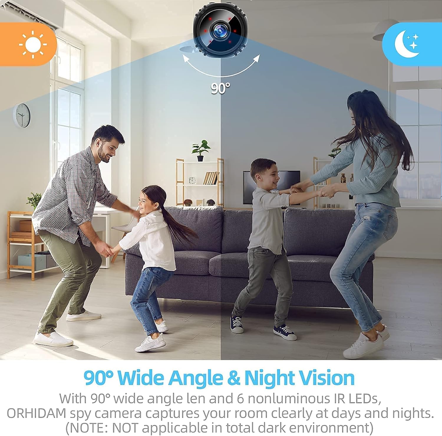 6 luces infrarrojas no luminosas integradas que pueden ofrecer visión nocturna dentro de 9.8 ft. Ideal para la supervisión de día y noche de habitaciones pequeñas.